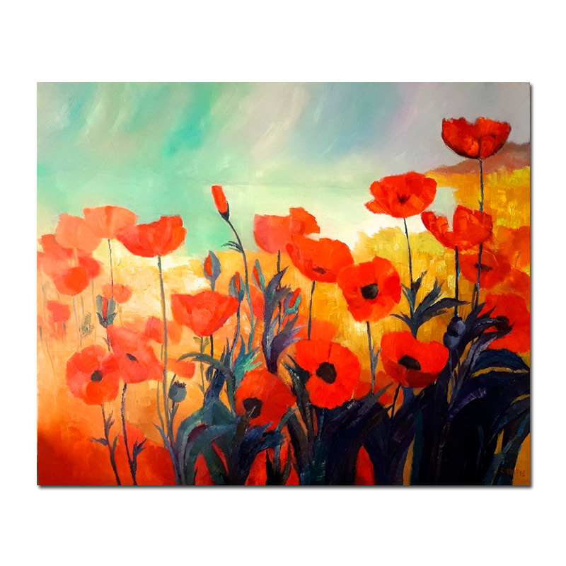 Carmen Searle, Amapolas III, óleo sobre tela 130 x 100 cm.