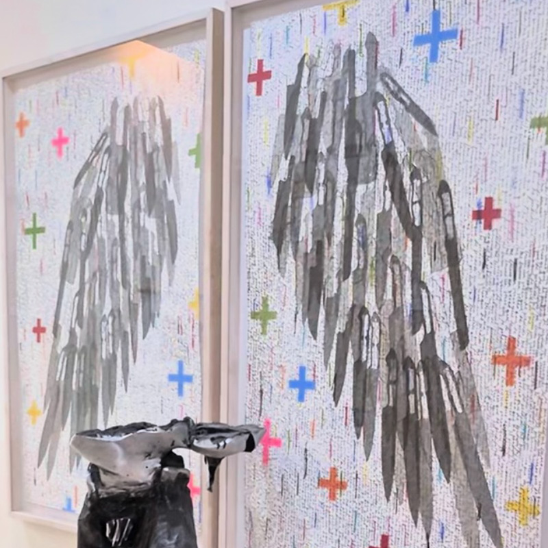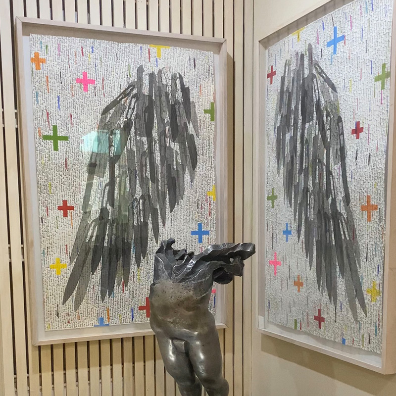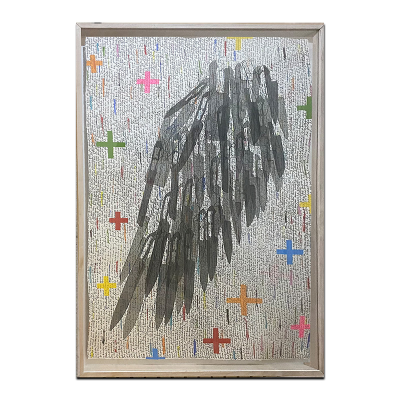 Cuchillos y machetes de las más diversas formas y procedencias industriales son perforados por la artista para escribir en ellos palabras que aluden a los sentimientos más profundos de la existencia humana.